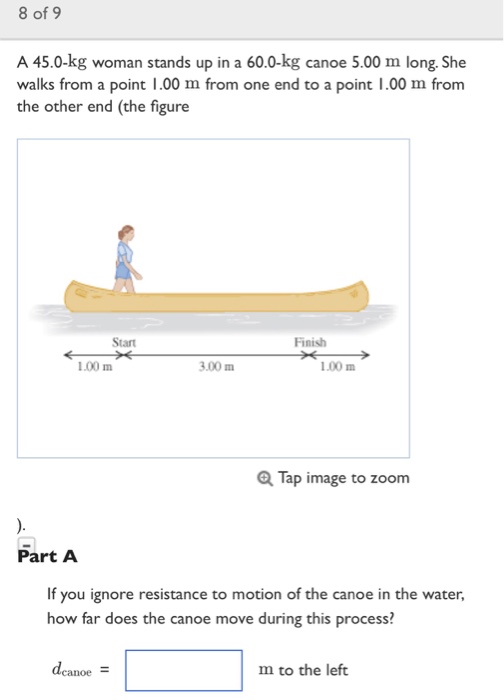 Solved 8 Of 9 A 45 0 Kg Woman Stands Up In A 60 0 Kg Canoe Chegg Com